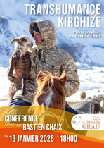 Rendez-vous le mardi 13 janvier 2026 à 18h pour une conférence consacrée au Kirghizistan et animée par Bastien Chaix, ancien berger de Provence et des Alpes devenu encadrant de séjours d’étude de la faune et de photographie animalière